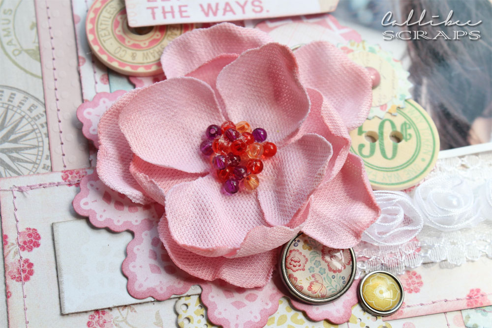 I cut out a couple of butterflies to fill in the little space under the flowers on the top right corner. To finish the page, I added silver Stickles around the page, circles and butterflies.