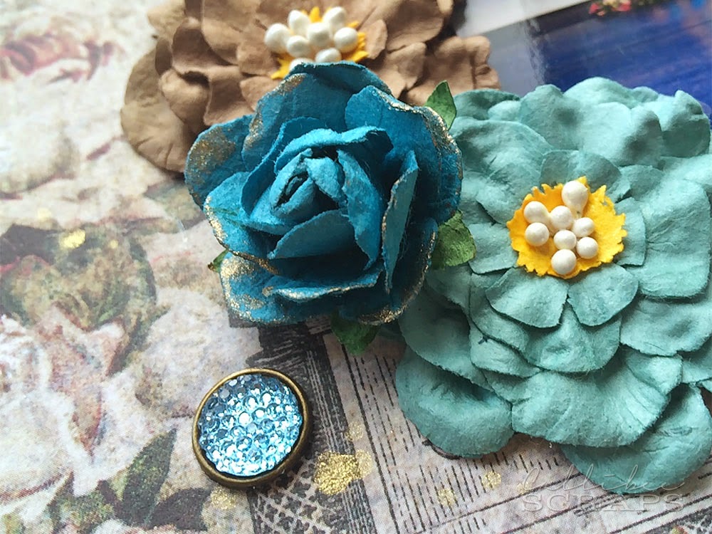 Extra Elements: rose die, vellum paper, gold and beige thread